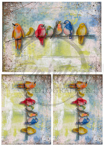 Multiple Feathered Friends with Backgound rice paper for decoupaging and framing.